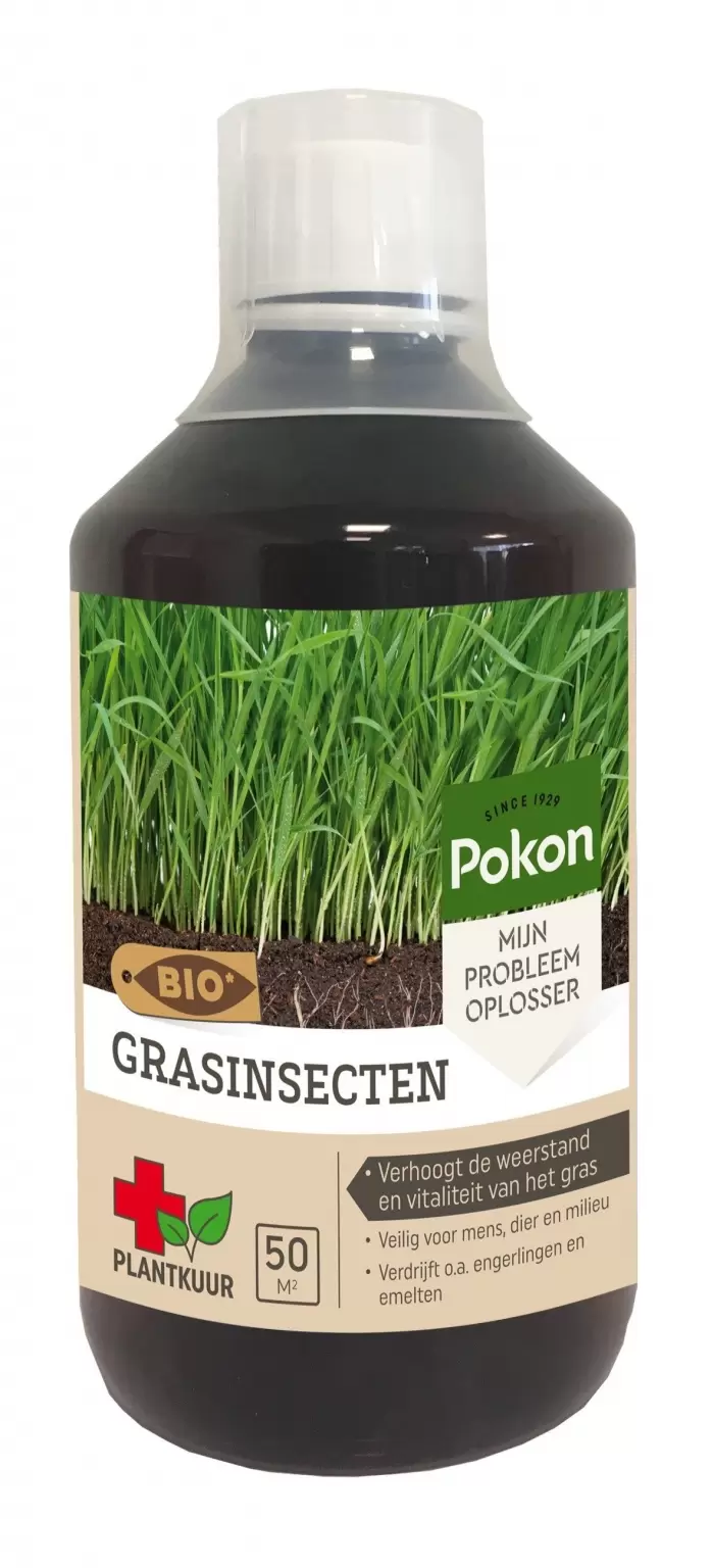 Heb je grasinsecten aangetroffen in je gazon? Pokon Bio Kuur voor Grasinsectgevoelige Gazons 500ml is een biostimulant dat de weerstand van het gras verhoogt.
