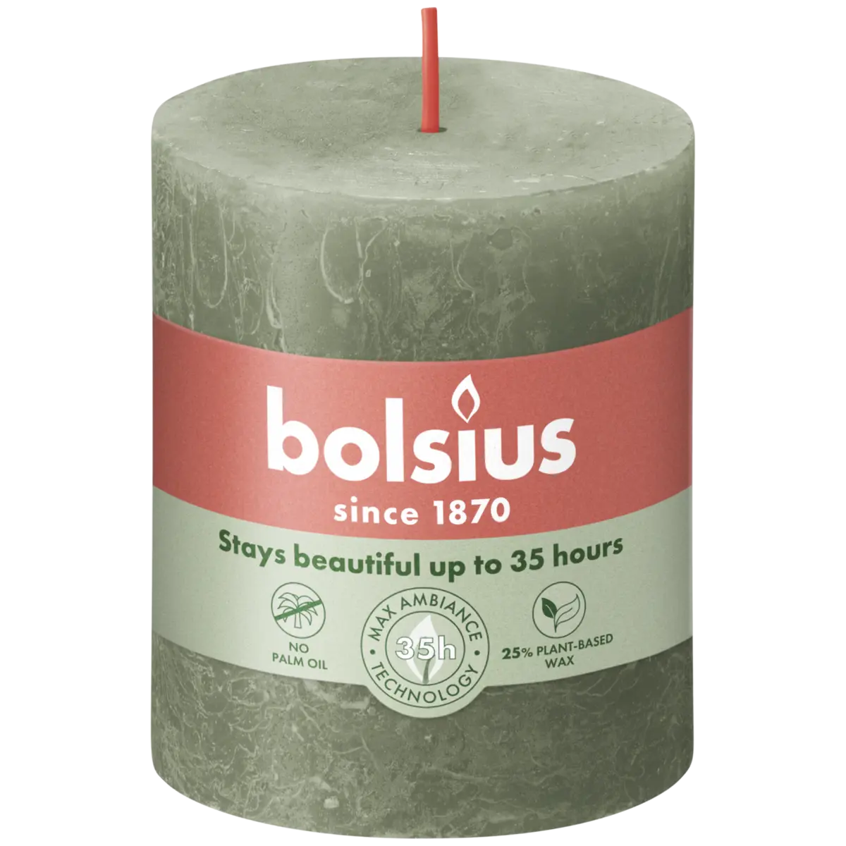 Bolsius Stompkaars rustiek 8x6,8cm Fresh olive