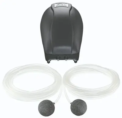De Pontec PondoAir 450 luchtpompset is ideaal om eenvoudig extra zuurstof toe te voegen aan het vijverwater. Extra zuurstof is waardevol voor de vissen en planten die in je vijver leven. De PondoAir 450 beschikt over een capaciteit van 450 liter per uur en is geschikt voor een vijver tot maximaal 4000 liter. De PondoAir 450 luchtpompset wordt geleverd inclusief een luchtpomp, 2 x 5 meter lange luchtslangen, 2 uitstroomstenen en 2 reservemembranen. Daarnaast heeft de luchtpomp een stroomkabel van 1,5 meter.