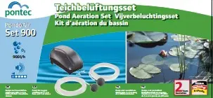 Met de Pontec PondoAir 900 luchtpompset kun je op eenvoudige manier extra zuurstof aan het vijverwater toevoegen. Extra zuurstof kan zeer waardevol zijn voor de vissen en planten die in je vijver leven. Met een capaciteit van 900 liter per uur is de PondoAir 900 geschikt voor een vijver tot maximaal 8000 liter. De PondoAir 900 luchtpomp set wordt compleet geleverd met een luchtpomp, 2 x 5 meter lange luchtslangen, 2 uitstroomstenen en 4 reservemembranen. Ook beschikt deze luchtpompset over 2 Y-verdelers en een 1,5 meter lange stroomkabel.