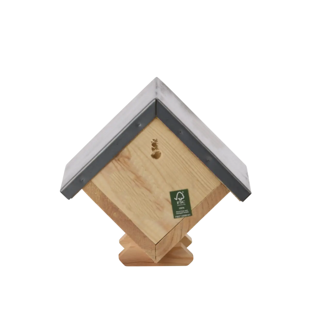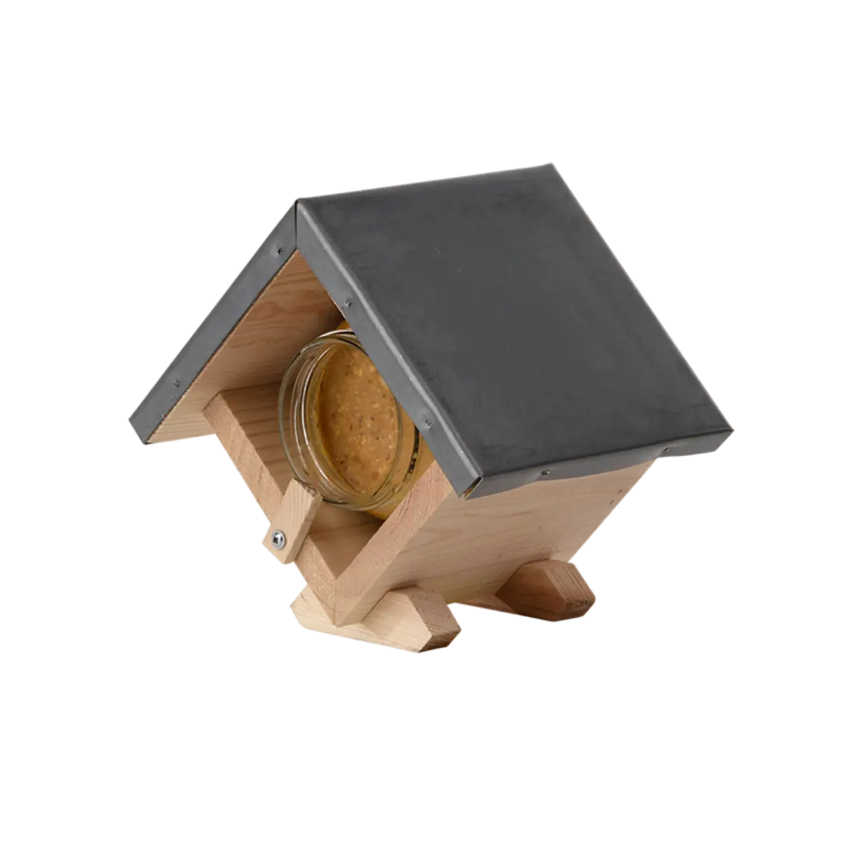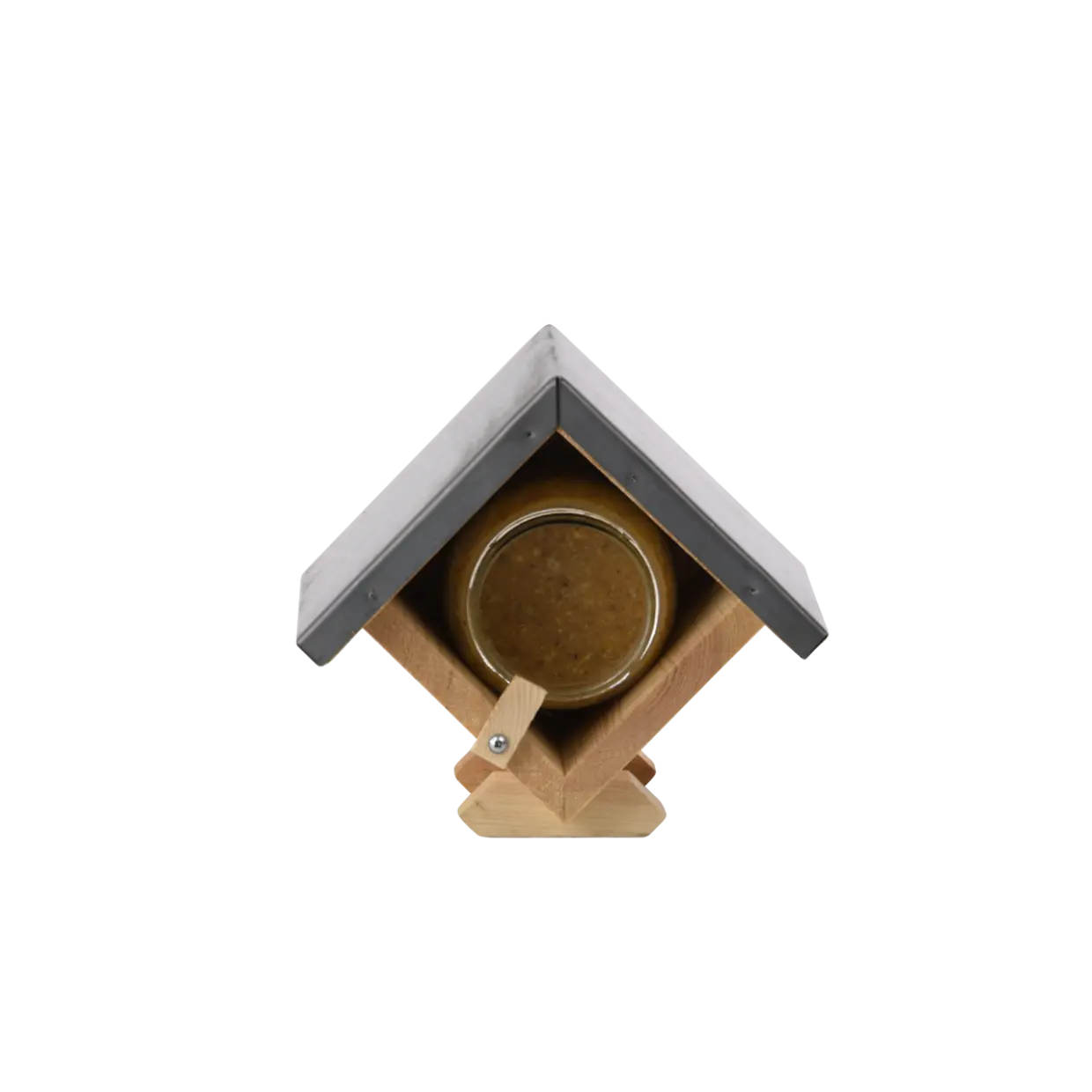 Vogelpindakaas is voor onze gevleugelde vrienden een ware lekkernij! In geen enkele tuin mag een pindakaashouder ontbreken. Deze basic houder met zinken dak en pure materialen biedt de mogelijkheid om een pindakaaspot te plaatsen. Met dit voederartikel worden acrobatische vogels aangetrokken zoals: Mezen, Mussen, Boomklevers en Spechten.