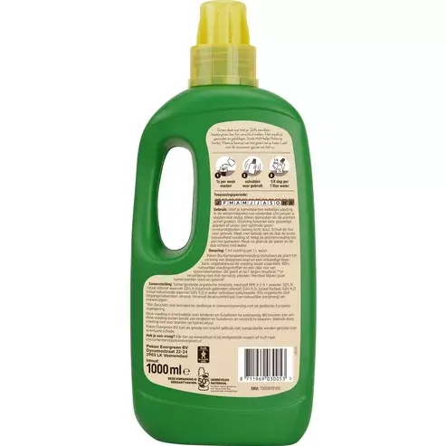 Pokon Bio Kamerplanten Voeding is een samengestelde organisch minerale meststof (NPK 3-2-5) + zeewier.