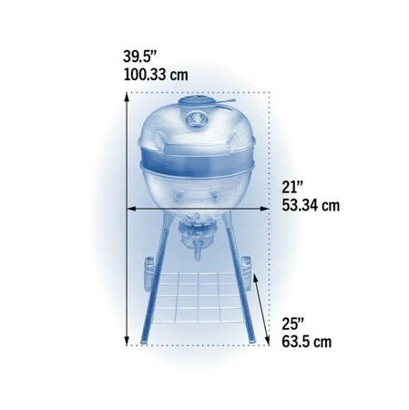 GARANTIE 10 Jaar Beperkte Garantie* TYPE BRANDSTOF Houtskool HOOFDGRILLOPPERVLAK 55 cm⌀ | 18 hamburgers TOTAAL GRILLOPPERVLAK 2.340 cm² INCLUSIEF DRAAISPIT Nee HOOGTE 100 cm | 137 cm met geopend deksel BREEDTE 53 cm DIEPTE 63 cm HOOGTE VERPAKKING 43,82 cm BREEDTE VERPAKKING 62,23 cm DIEPTE VERPAKKING 52,07 cm GEWICHT VERPAKKING 25,04 kg