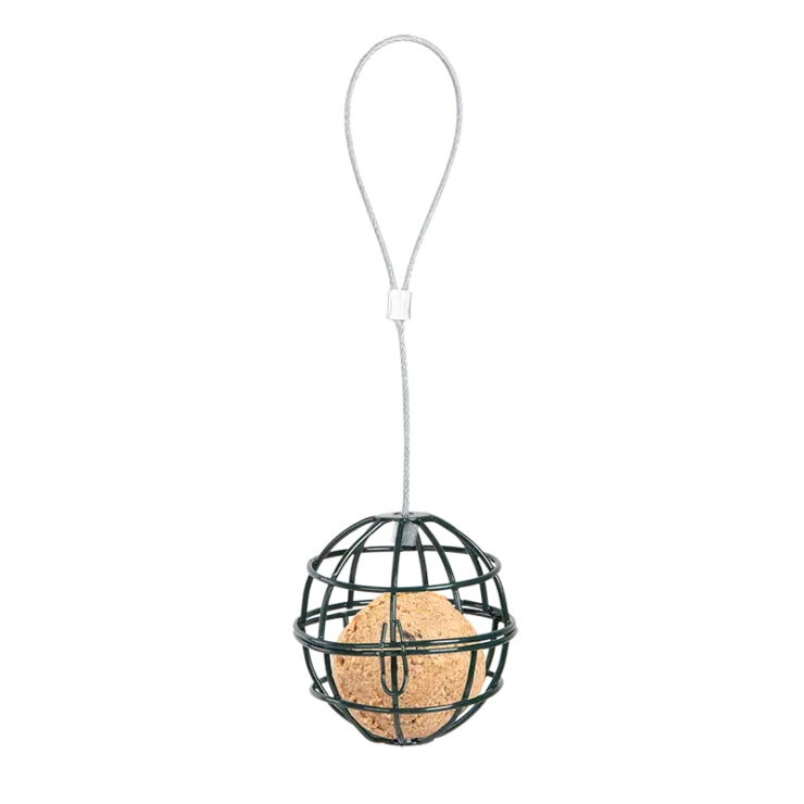 Een praktische en handige manier om vetbollen aan vogels te voeren. Deze vetbolhouder kan aan bomen, haken en voederstations worden gehangen.